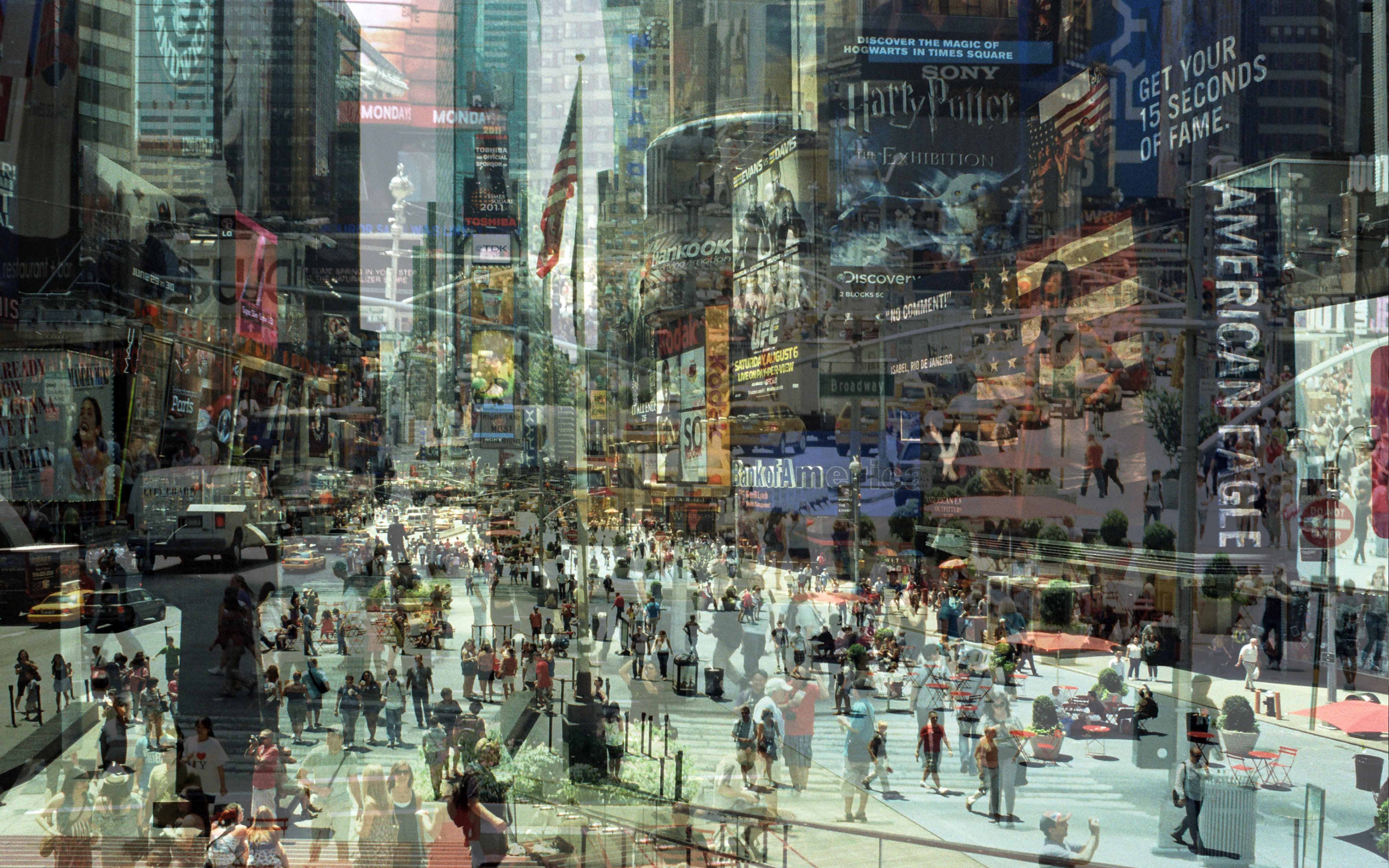 Davide Bramante fa un’operazione molto particolare. Utilizzando la tecnica dell’esposizione multipla in fase di ripresa, non digitale, riesce a creare una compresenza di mondi diversi nella medesima bidimensionalità. E in effetti il concetto di bidimensionalità in questa espressione artistica diventa quasi un preciso punto su cui discutere. Perchè se l’immagine fotografica restituisce sempre e comunque un mondo piatto, appunto bidimensionale, tanto che le nuove frontiere spostano l’attenzione verso una tridimensionalità che è di fatto inganno, illusione percettiva, Bramante invece sviscera un concetto di tridimensionalità totalmente inattuale (inattuale, se mi viene passato il termine). Io come Editore di poesia (ho conosciuto il lavoro di questo artista proprio per una copertina di uno dei libri da me pubblicati: “Teoria del pirata” di Riccardo Raimondo, collana Scilla, prefazione di Giorgio Barberi Squarotti e immagine in copertina di Bramante) ho gioco facile a parlare di questa inattualità perchè la poesia è l’inattualità per eccellenza. Un’inattualità che è scavo e ricerca verticale, dentro le cose. Bramante fa questo, trasformando le due dimensioni in tre, quattro, cinque attraverso un accostamento di immagini e trasparenze che ricordano moltissimo lo strumento poetico. La metafora, ma anche l’allegoria, paradossalmente anche il climax seppure a Bramante bastino due soli elementi sovrapposti per raggiungere l’apice espressivo. Due se ci si sofferma solo sul visibile. Perchè la trasparenza è innegabilmente una terza immagine sovrapposta, sottoposta, incarnata dentro le immagini. Non a casa l’artista è partito con installazioni e sculture il cui soggetto era l’ombra (si era alla fine degli anni ottanta). E cos’è l’ombra se non una scura trasparenza e cos’è la trasparenza se non una chiarissima ombra? Così le fotografie di mondi lontani e contrapposti diventano l’uno la trasparenza dell’altro, l’uno l’ombra dell’altro, esplorando a più dimensioni il concetto di totalità e compresenza. Ma la compresenza per gli esseri umani e lo loro civiltà è anche convivenza, e con questo senso le immagini artistiche di Bramante diventano un vero e proprio dito puntato sulle convivenze (o non convivenze). Che siano di persone, di civiltà, di concetti. Una tridimensionalità, una quadridimensionalità, che non è una percezione dell’occhio ma una percezione della mente nella direzione dei diversi significati delle cose. Dicendo in una sola immagine tempi e luoghi diversississimi tra loro, ponendo quindi la domanda sulla loro effettiva diversità. Su cosa li rende diversi oppure su cosa emerge dalla loro diversità. E questo è lo strumento poetico per eccellenza. Anche di Davide Bramante.