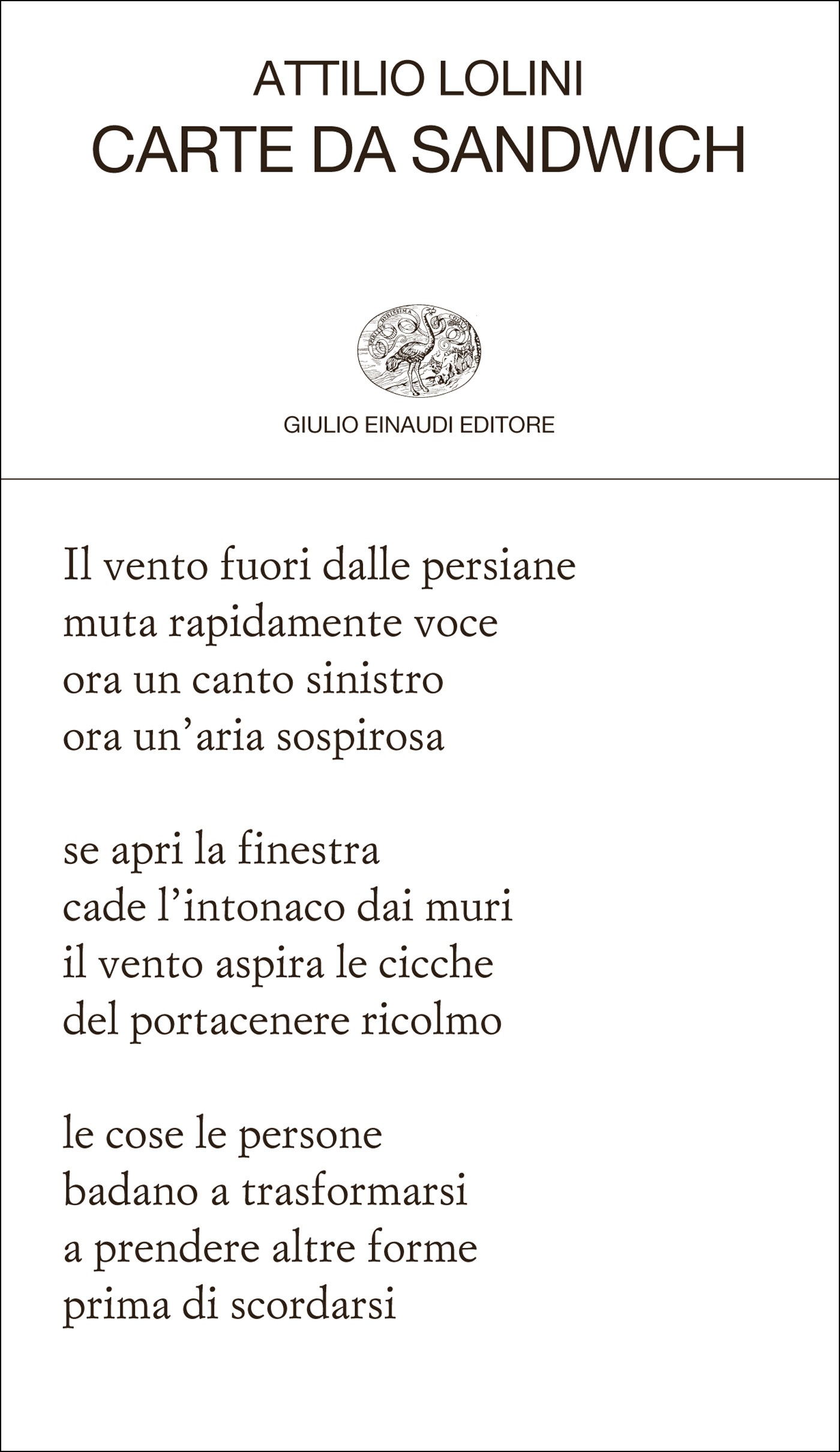 Alcuni giorni fa ero a Pordenone a parlare con un amico libraio il quale, per spiegarmi dei retroscena della cittadina di qualche anno fa, ha fatto l’esempio di una critica a un noto politico italiano che suona più o meno così: a certe persone non puoi chiedere di provare vergogna, perchè la vergogna è per loro un concetto estraneo. Queste persone sono talmente convinte di essere nel giusto, e si chiudono nella loro convinzione, che qualunque cosa facciano si considerano a prescindere dalla parte della ragione. Ho trovato questo stesso concetto poeticamente espresso in Carte da Sandwich di Attilio Lolini (Einaudi 2013). Lo stesso Lolini in una sua poesia afferma senza vergogna / son diventato carogna.
