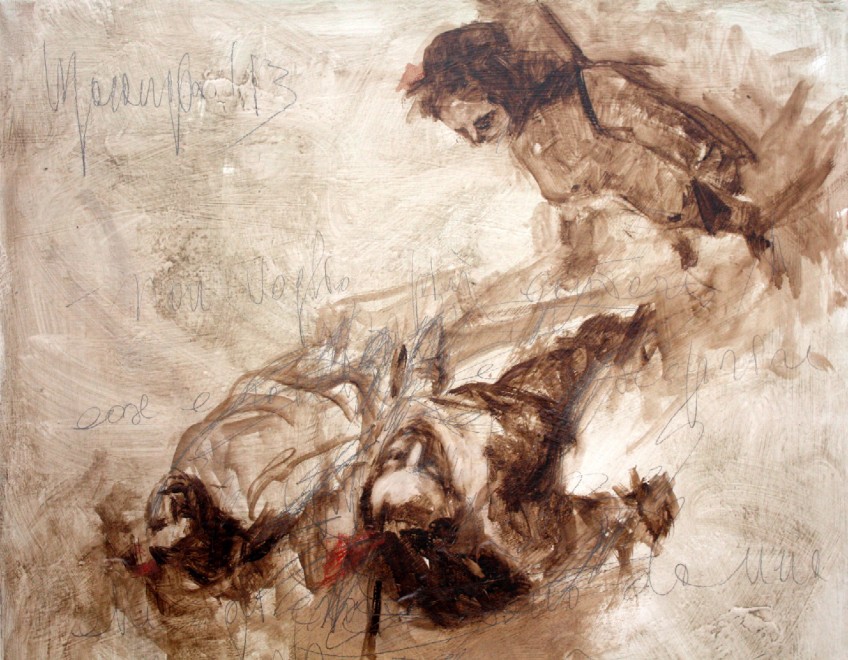 Fulvio di Giuseppe nel succitato articolo di Repubblica dice della tua mostra: “Raccontare le “brigantesse” tra parole, immagini, pittura e fotografia. È l’obiettivo del progetto, ideato e curato da Alessandro Turco, che nasce e si sviluppa attorno al romanzo di Annalisa Bari, edito Bompiani. L’obiettivo di “Coccarde rosse: le brigantesse, suggestive atmosfere ed esplorazioni visionarie” è quello di accompagnare la scrittura con alcune “visioni”, quali l’esposizione pittorica di Massimo Marangio e quella fotografica di Giuseppina Schifino. Non giudizi né riflessioni storiche ma esplorazioni visionarie di suggestive atmosfere, nella convinzione che queste visioni della letteratura possano integrare e completare la vista della storiografia”. Perchè questa interdisciplinarietà ?