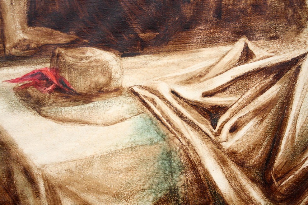E’ successo tutto per caso, come spesso accade. Un’amica mi aveva chiesto una collaborazione per realizzare una presentazione del suo romanzo sulle brigantesse in Basilicata. In quel periodo, di tanto in tanto, andavo in vacanza a Viggianello, sul Pollino, ed è lì, che un’altra amica fotografa mi ha accompagnato in un luogo distante e ameno, dove, in un locale, erano affissi alcuni ritratti dei “briganti” di cui c’era stata la presenza in zona, negli anni in cui si diedero alla macchia. Guardando quei volti, mi sono accorto di conoscere poco la loro storia e così, tornando a casa, ho iniziato a leggere romanzi e saggi sul brigantaggio e ho avuto voglia di raccontarli, attraverso la figura delle donne, delle brigantesse, queste contadine che scelsero di affiancare i loro compagni in una comune lotta per riscattare la libertà e di cui si è sempre parlato in modo marginale come anche della storia del brigantaggio. Ho cercato di raccontarle in modo “artistico”, come piace a me. Insieme alla mia amica fotografa abbiamo scritto un progetto, “Pensando, intrecciando ombre”, in cui abbiamo immaginato queste figure nella loro quotidianità che era fatta anche di piccole cose di dimensione domestica, come trovare il cibo e cucinare, e di intimità con i loro compagni. Attraverso una comparsa, le nostre brigantesse sono diventate ombre, che vivono in quella pietra che le ha viste protagoniste oltre centocinquant’anni fa, e che oggi sono sedimentate nella polvere del tempo. Il progetto si è poi arricchito di quindici tavole pittoriche in olio e bitume, di un artista sublime, a cui ho chiesto d’interpretare la sofferenza ed il carattere battagliero di queste tragiche figure.