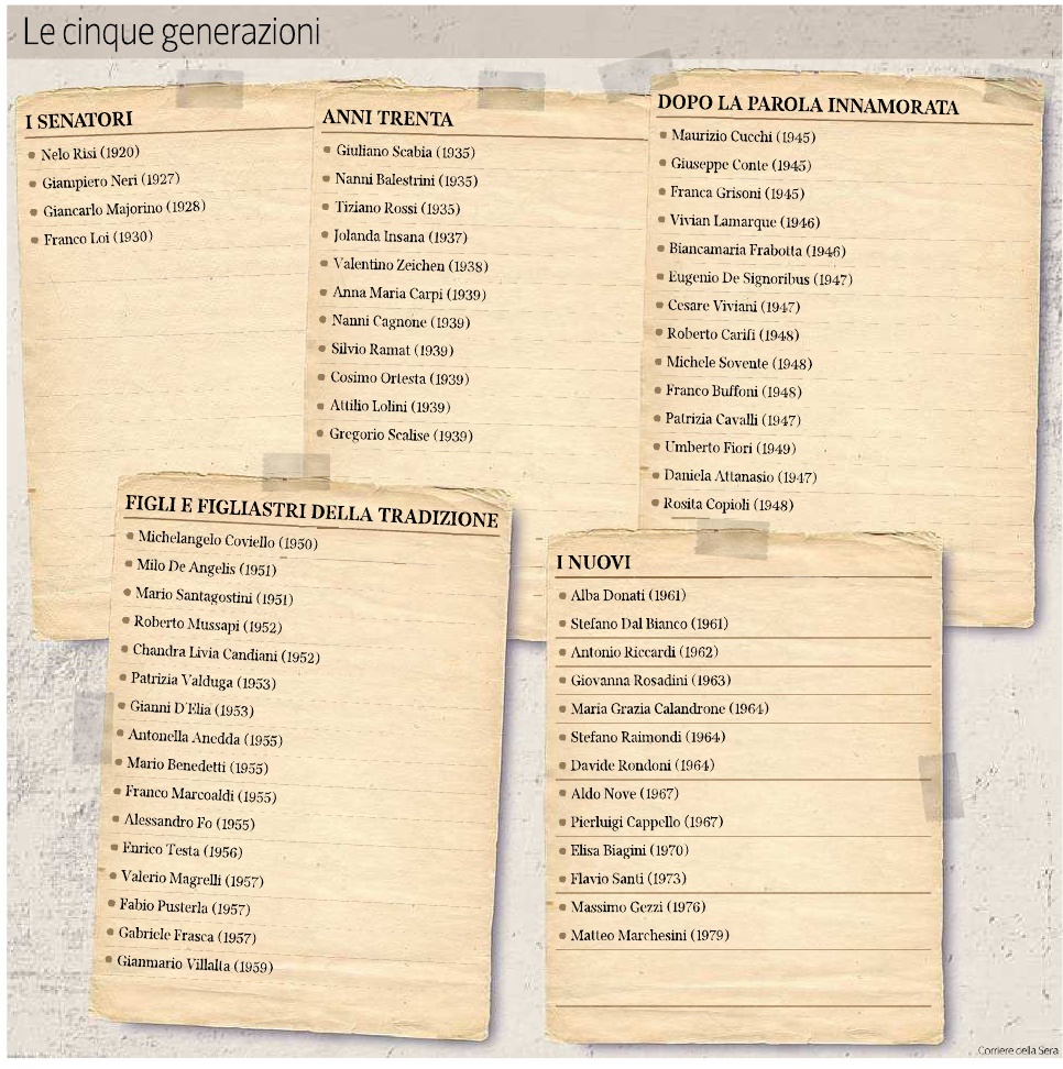 Alcuni anni fa pordenonelegge, che pure ha poca simpatia per le pubblicazioni della Casa di chi vi scrive, aveva tentato una mappatura ponendo subito dei requisiti: poeti tra i 20 e 40 anni che hanno all’attivo almeno una pubblicazione non autoprodotta. Tra i vari esperimenti di mappatura, non ultimo quello dell’Università di Bologna, a me pare che pordenonelegge abbia posto la questione in una possibile direzione. In fondo in tutte le catalogazioni abbiamo dei requisiti essenziali da soddisfare, dei criteri. Con questo non voglio dire che le varie mappature, non ultima quella di Di Stefano sul Corriere della Sera (da cui l’immagine di copertina di questo post), siano errate, solo fanno emergere la domanda: chi può essere definito poeta?