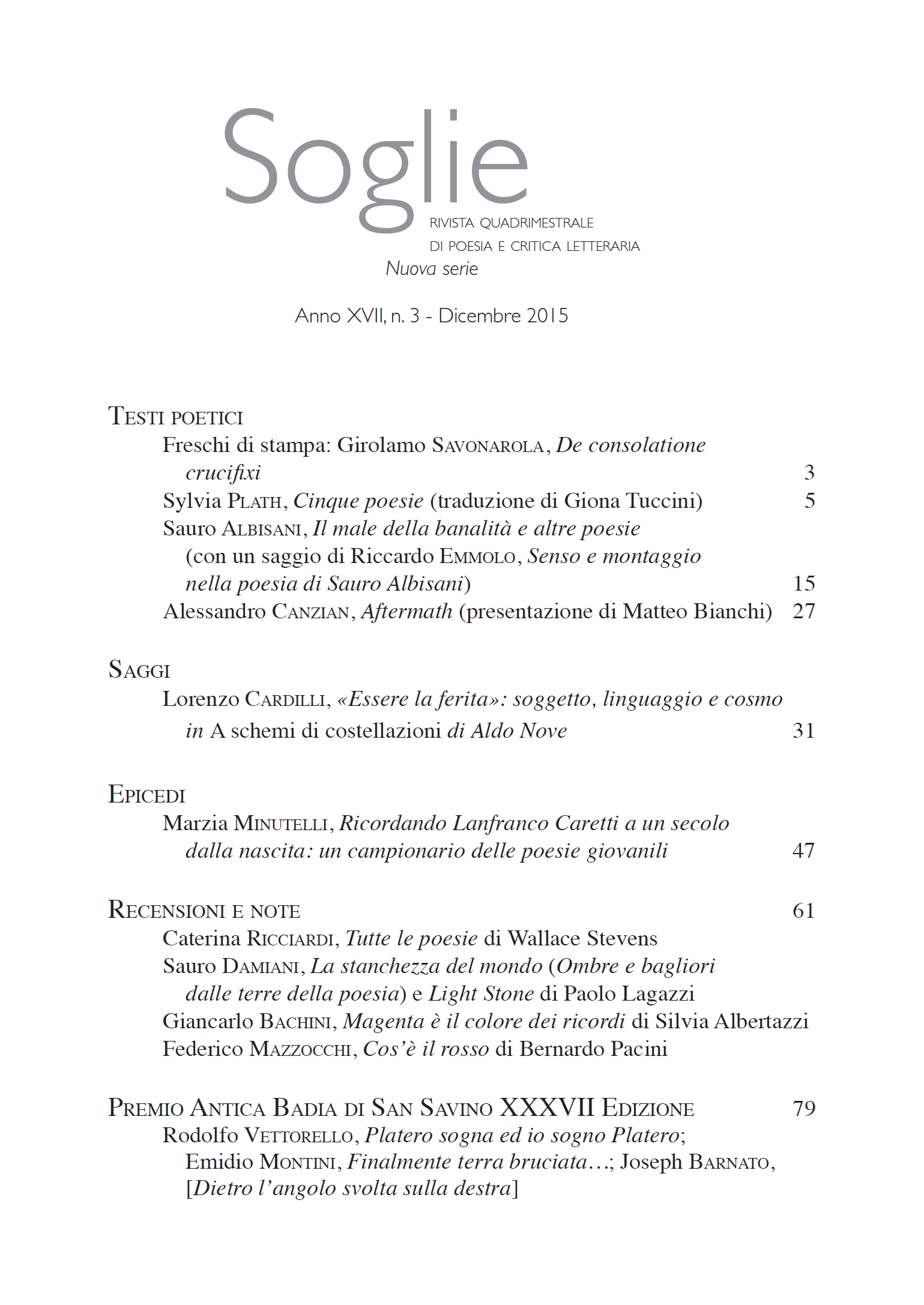 23 febbraio 201624 giugno 2020 Matteo Bianchi su Aftermath – da Soglie, Dicembre 2015 Soglie – Rivista quadrimestrale di Poesia e Critica letteraria Anno XVII, n.3 – Dicembre 2015 Condividi: Fai clic per condividere su Facebook (Si apre in una nuova finestra) Facebook Fai clic per condividere su X (Si apre in una nuova finestra) X Fai clic qui per condividere su LinkedIn (Si apre in una nuova finestra) LinkedIn Fai clic per condividere su WhatsApp (Si apre in una nuova finestra) WhatsApp Fai clic per inviare un link a un amico via e-mail (Si apre in una nuova finestra) E-mail Mi piace Caricamento... Correlati