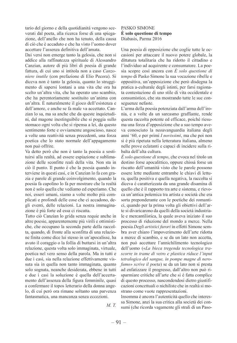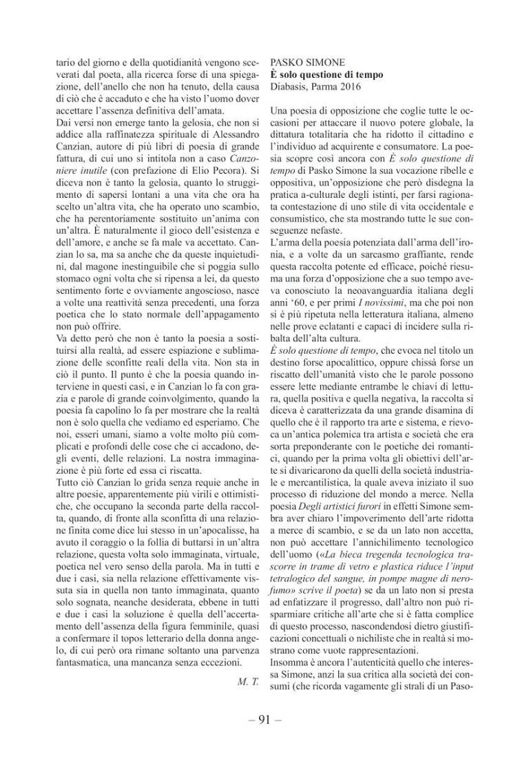 Va detto però che non è tanto la poesia a sostituirsi alla realtà, ad essere espiazione e sublimazione delle sconfitte reali della vita. Non sta in ciò il punto. Il punto è che la poesia quando interviene in questi casi, e in Canzian lo fa con grazia e parole di grande coinvolgimento, quando la poesia fa capolino lo fa per mostrare che la realtà non è solo quella che vediamo ed esperiamo. Che noi, esseri umani, siamo a volte molto più complicati e profondi delle cose che ci accadono, degli eventi, delle relazioni. La nostra immaginazione è più forte ed essa ci riscatta.