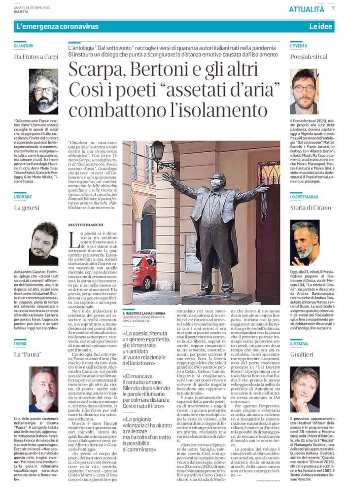 In occasione del Poesia Festival esce un articolo sulla Gazzetta di Modena a firma di Matteo Bianchi che parla del coraggio, dell’intelligenza dei poeti. C’è anche la Samuele Editore, tra gli attori di questo complesso periodo storico.