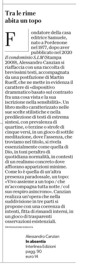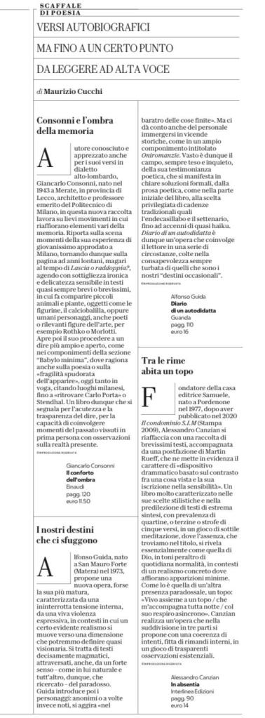 18 agosto 2025 In absentia su Robinson del 17 agosto In absentia (Interlinea, 2024) su Robinson del 17 agosto, a cura di Maurizio Cucchi Condividi: Fai clic per condividere su Facebook (Si apre in una nuova finestra) Facebook Fai clic per condividere su X (Si apre in una nuova finestra) X Fai clic qui per condividere su LinkedIn (Si apre in una nuova finestra) LinkedIn Fai clic per condividere su WhatsApp (Si apre in una nuova finestra) WhatsApp Fai clic per inviare un link a un amico via e-mail (Si apre in una nuova finestra) E-mail Mi piace Caricamento... Correlati
